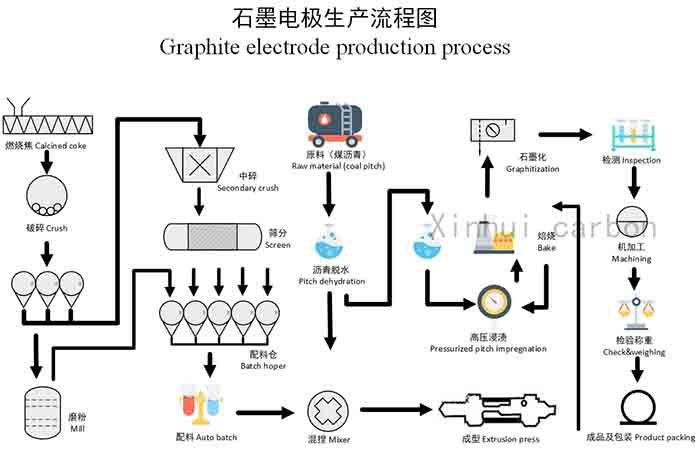 الکترود گرافیتی مصنوعی تولید شده توسط Xinhui Carbon به استفاده از کک نفتی و کک پیچ به عنوان سنگدانه، قطران زغال سنگ به عنوان چسب، و مواد خام کلسینه، آسیاب، مخلوط، خمیر، شکل، کلسینه، آغشته، گرافیت و پردازش مکانیکی اشاره دارد. این یک نوع الکترود گرافیتی مقاوم در برابر درجه حرارت بالا است.